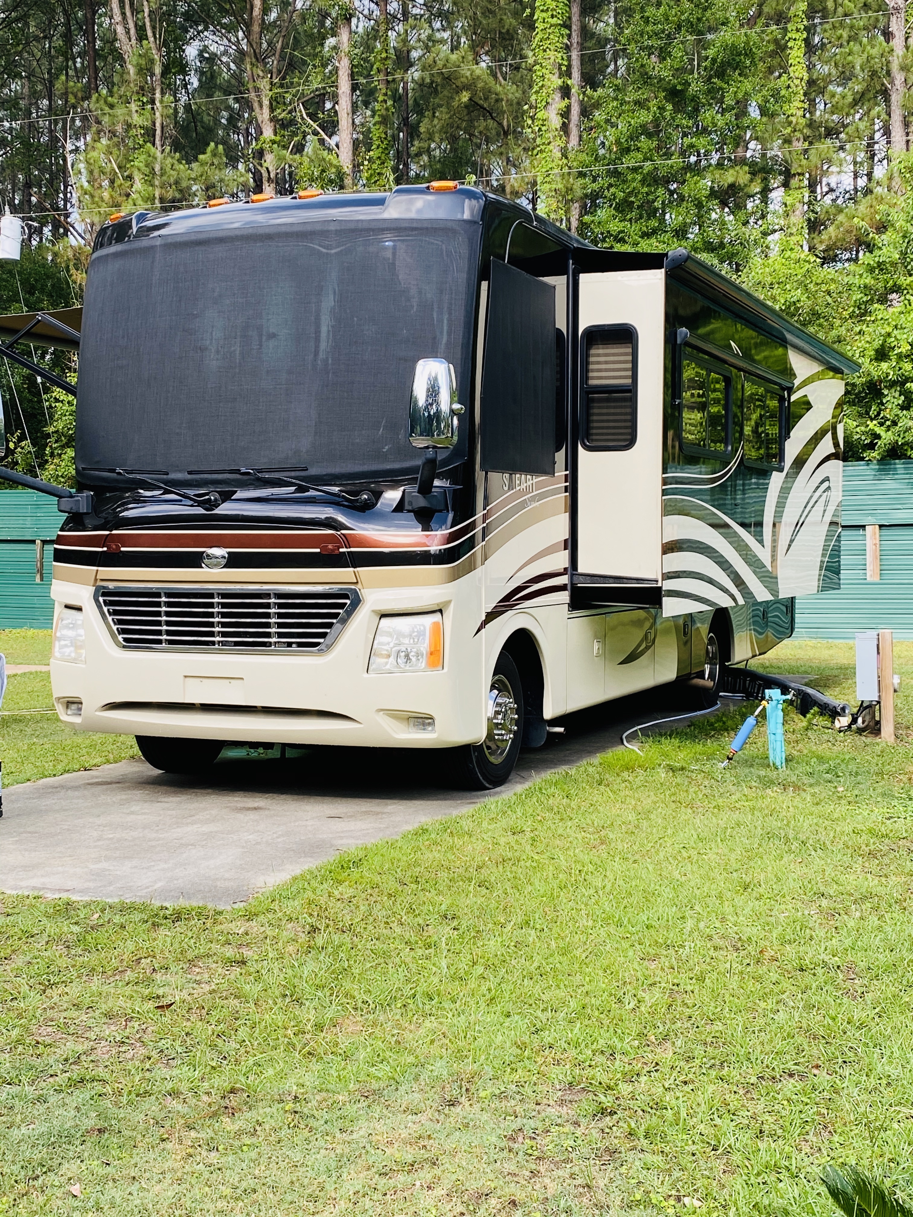 370hp cummins motor new queen bed hide a bed couch with air mattress 10 gallon hot water washer dryer combo all maple cabinets 35 inch and 24 inch tv s 5 speaker sound system corian countertops 4 door fridge freezer microwave convection oven large bathroom with separate. Private seller austin tx 1 623 mi. Towed a car behind it for thousands of miles without even noticing a difference in performance. 2003 monaco safari zanzibar class a diesel rv coach motorhome with 2 slides ready to go and drive.
